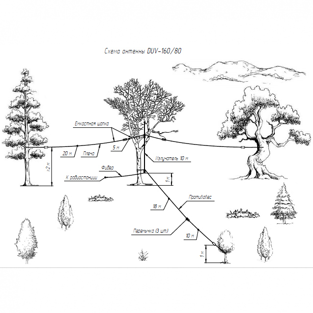 Конструктивно антенна состоит из вертикального излучателя высотой 11 метров с ёмкостными нагрузками и противовеса. Ёмкостные нагрузки компенсируют реактивную составляющую импеданса и позволяют понизить рабочую частоту. Для перестройки между частотами в соответствии с таблицей предусмотрены электрические перемычки на противовесе и ёмкостных нагрузках.