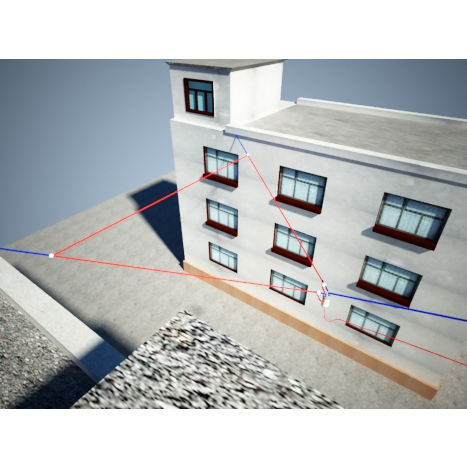Между двумя промышленными зданиями была размещена проволочная рамка треугольной формы с периметром 85 метров. Особое внимание уделили расположению сторон - они были установлены не параллельно стенам зданий. Питание осуществлялось в одном из углов треугольника.