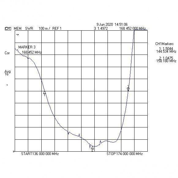 - Не требует настройки: Готова к работе сразу после монтажа. Отличное согласование (КСВ ≤ 1.5) во всем заявленном диапазоне 144-168 МГц.