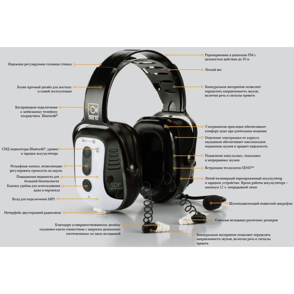 Гарнитура Sensear SDP разработана на основе революционной технологии SENS ™ компании Sensear, которая выделяет и повышает разборчивость речи, одновременно подавляя опасные фоновые шумы. Технология SENS ™ понижает уровень посторонних шумов и сохраняет естественные качества звуков, позволяя не терять бдительность в рабочей обстановке.