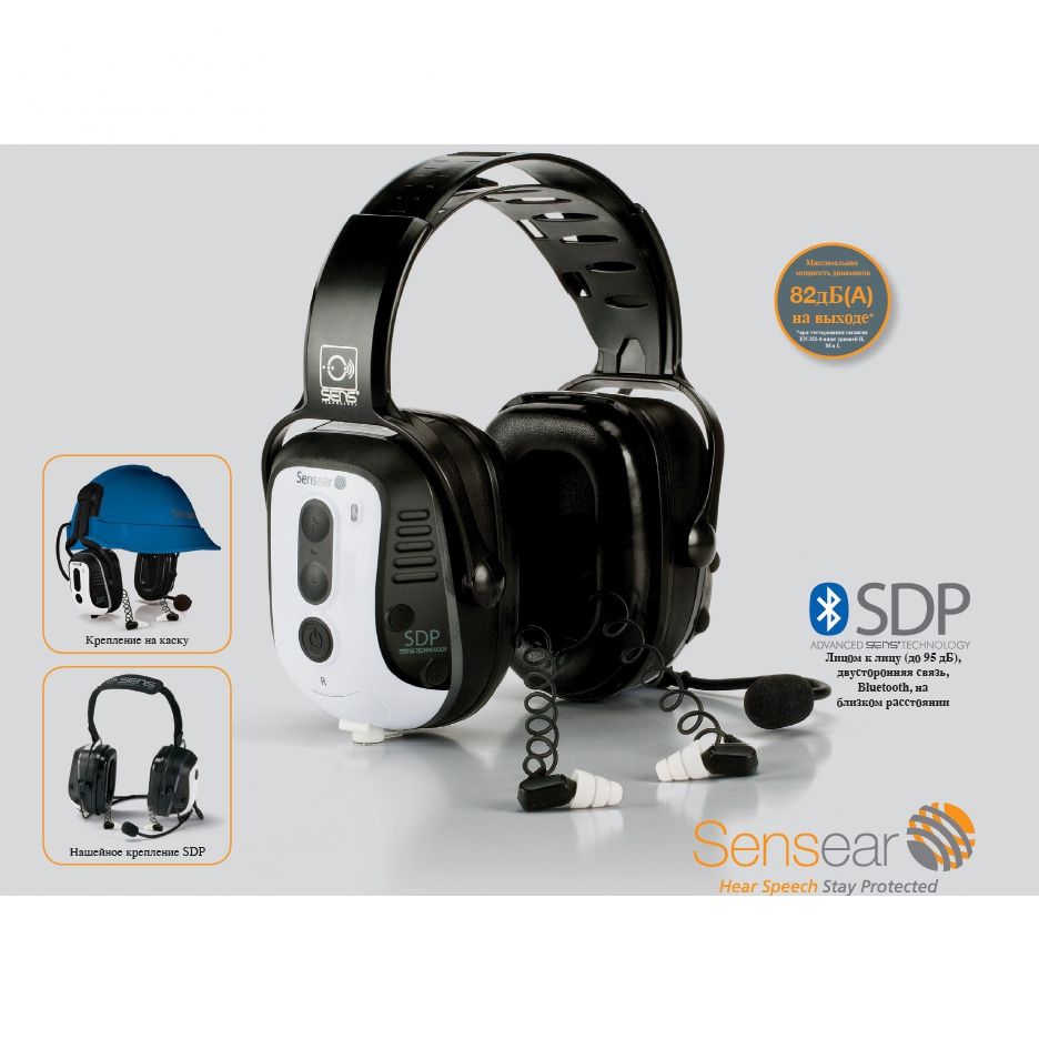 Быть на связи и в безопасности с наушниками Sensear Smart Double Protection. Благодаря наушникам Sensear SDP с двойной защитой Smart Double Protection компании Вы можете оставаться на связи и чувствовать себя в безопасности в экстремальных условиях. До настоящего времени рабочие, которым приходилось использовать двойную защиту, не имели возможность поддерживать связь в экстремальных рабочих условиях. Наушники SDP компании Sensear позволяют работникам общаться посредством двусторонней радиосвязи, мобильного телефона с поддержкой Bluetooth и через наушники (на расстоянии до 50 м) в условиях чрезвычайно сильного шума.