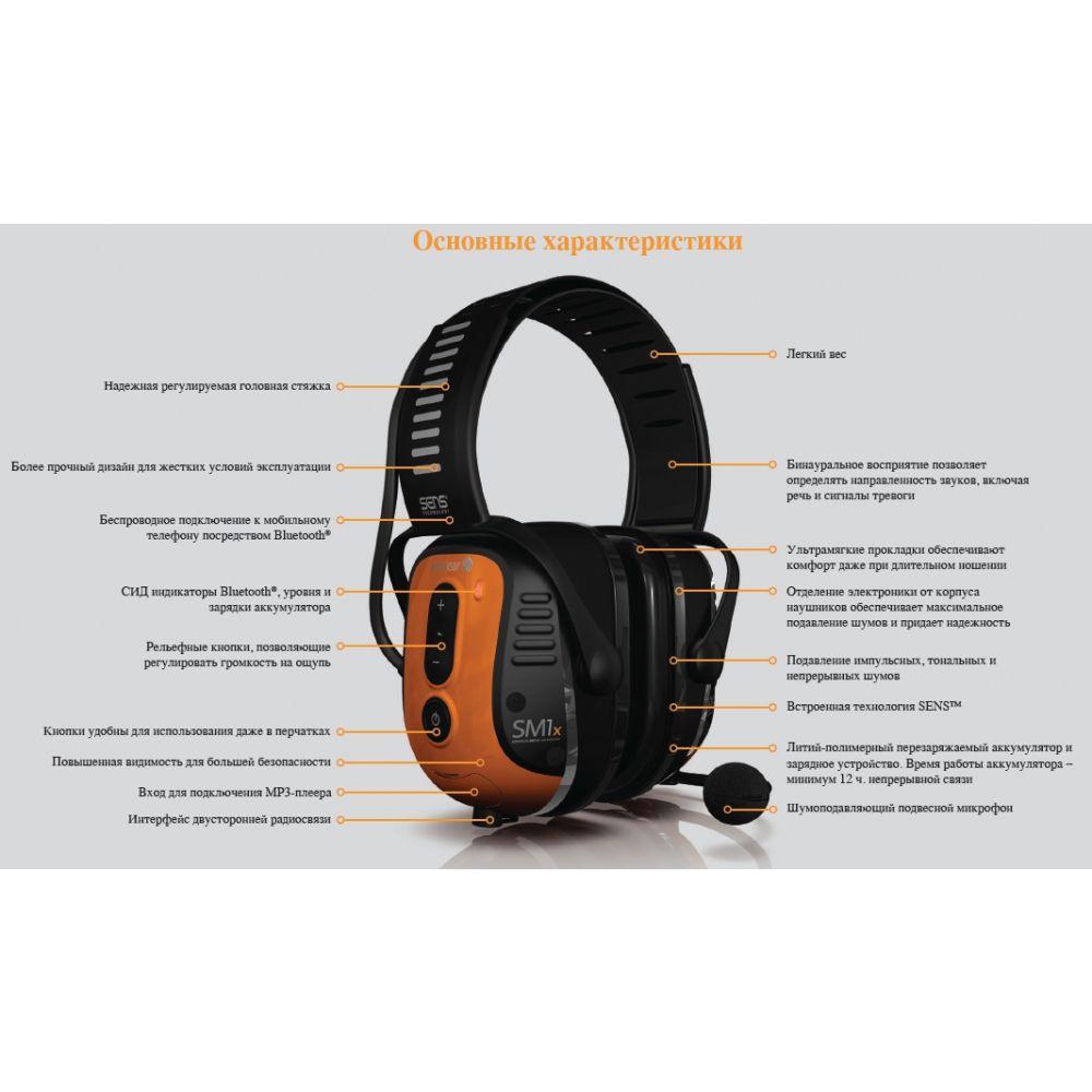 Наушники Sensear SM1x имеют прочную конструкцию, яркую хорошо различимую расцветку. Амбушюры наушников Sensear SM1x обладают максимальным комфортом и высоким уровнем защиты органов слуха от промышленного шума вплоть до уровня 85 дБ (А). Также SensearSM1x оснащены тактильными, эргономичными клавишами управления и технологией общения "лицом к лицу".