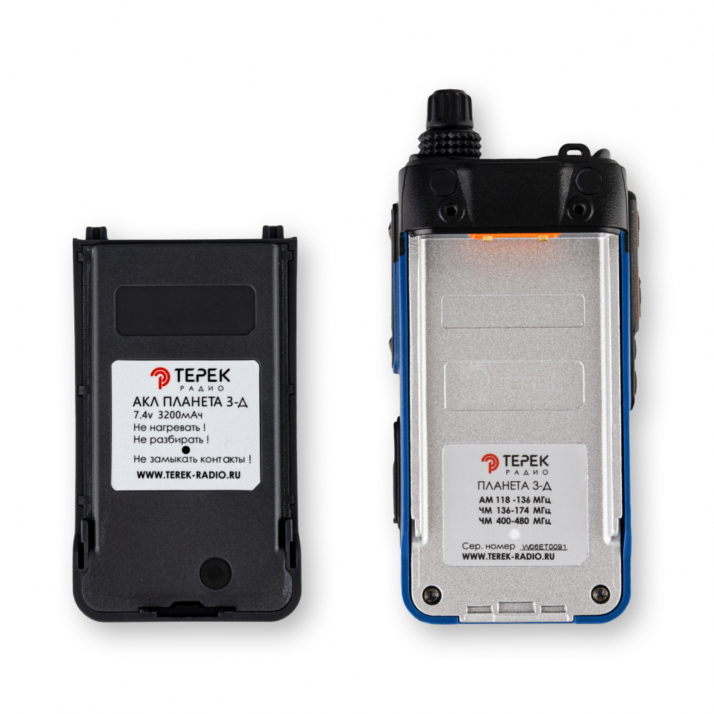 Благодаря аккумулятору передового типа Li-Ion емкостью батареи составляет 3200 мАч, радиостанция "ТЕРЕК ПЛАНЕТА 3Д" может работать длительное время без подзарядки. Это делает ее идеальным выбором для длительного использования.