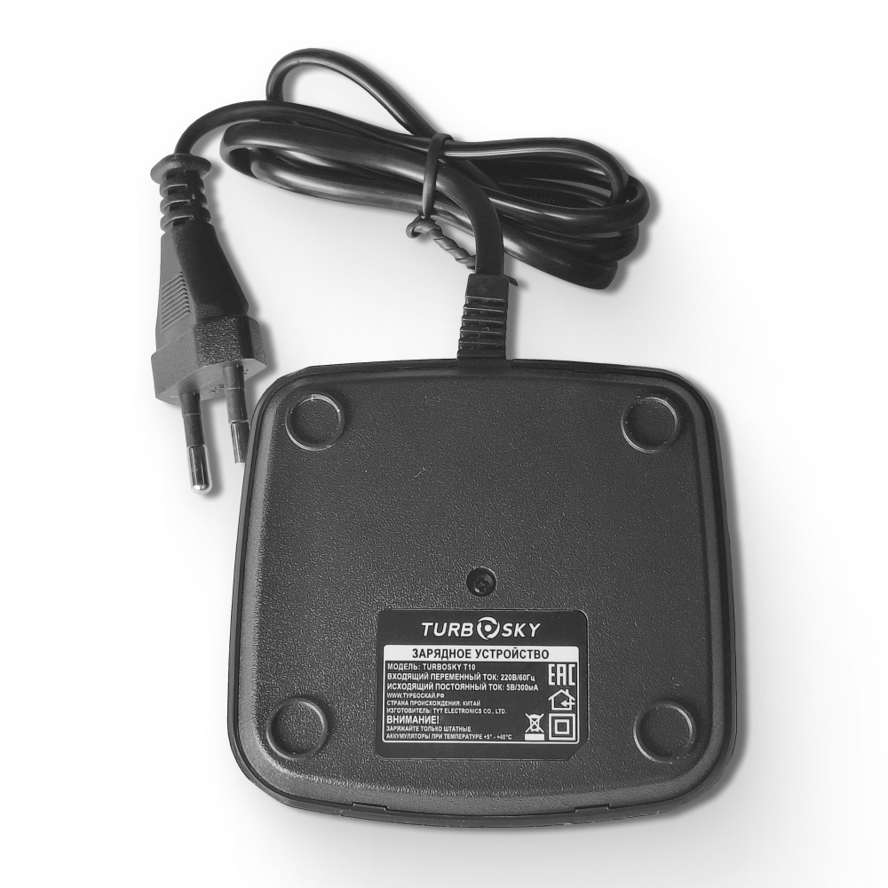 Преимуществом Turbosky T10 можно считать аккумулятор повышенной емкости на 3000 мАч. Радиостанция без проблем отработает полную рабочую смену даже при интенсивных радиопереговорах. Li-Ion батарея быстро заряжается, а заменить ее на запасную не составит труда — АКБ прищелкивается к корпусу по принципу пистолетной защелки, которая обеспечивает надежный контакт аккумулятора и трансивера Turbosky. Встроенный экономайзер еще больше увеличивает автономность работы от одной зарядки.