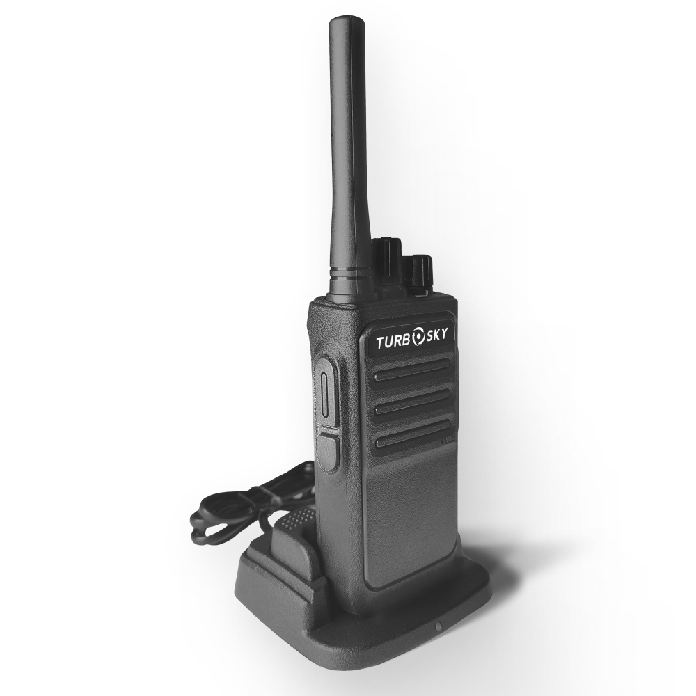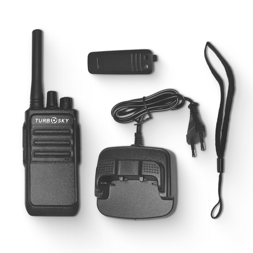Портативная рация Turbosky T10 — средство для профессионального использования в сетях радиосвязи предприятий различного назначения. Радиостанция T10 работает в частотном диапазоне UHF LPD, максимально адаптированном для складского и промышленного применения, а также для плотной городской застройки. Высокочувствительный приемник Турбоскай Т-10 обеспечивает превосходный прием даже слабого сигнала, а передатчик 4 Вт гарантирует трансляцию сигнала на большую территорию. Несмотря на интересные характеристики, цена трансивера невысокая, что делает устройство доступным даже для небольших компаний и частных лиц.