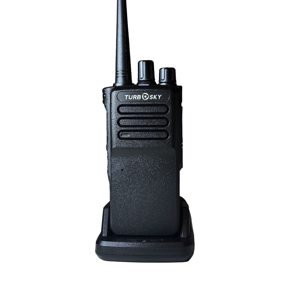 Портативная радиостанция Turbosky T14 UHF представляет собой многофункциональное устройство для профессиональной и любительской связи в диапазоне 400-470 МГц, сочетающее компактные габариты с расширенным набором сервисных функций. Модель оснащена 16 каналами памяти с поддержкой 50 CTCSS и 210 DCS субтонов, обеспечивающими гибкую организацию групповой работы и эффективную защиту от помех. Функция голосовой активации передачи (VOX) позволяет работать в режиме hands-free, а встроенное FM-радио 87-108 МГц предоставляет возможность прослушивания музыкальных и информационных программ. Интуитивное управление устройством дополняется голосовыми подсказками, упрощающими процесс настройки и эксплуатации.