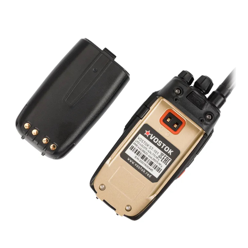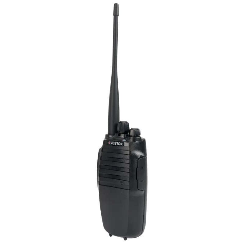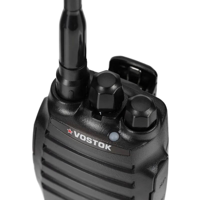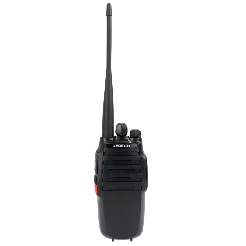 Vostok ST-101 — это портативная радиостанция, созданная для тех, кому нужна максимальная надёжность, простота и долгое время работы без подзарядки. Без дисплея и клавиатуры — ничего лишнего, только самое важное. Две программируемые кнопки (каждая с поддержкой двух функций) и классические рукоятки громкости и каналов на верхней панели делают управление интуитивно понятным даже для неподготовленного пользователя.