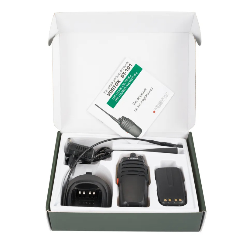 Vostok ST-101 — это ультранадёжная рация без лишних деталей, созданная для продолжительной работы. 16 каналов с предустановленными LPD/PMR, аккумулятор 3600 мАч, две антенны в комплекте, VOX, скремблер, компандер, TOT и две программируемые кнопки. Для охраны, строительства, логистики, туризма и всех, кому нужна простая и надёжная связь с максимальным временем автономной работы.